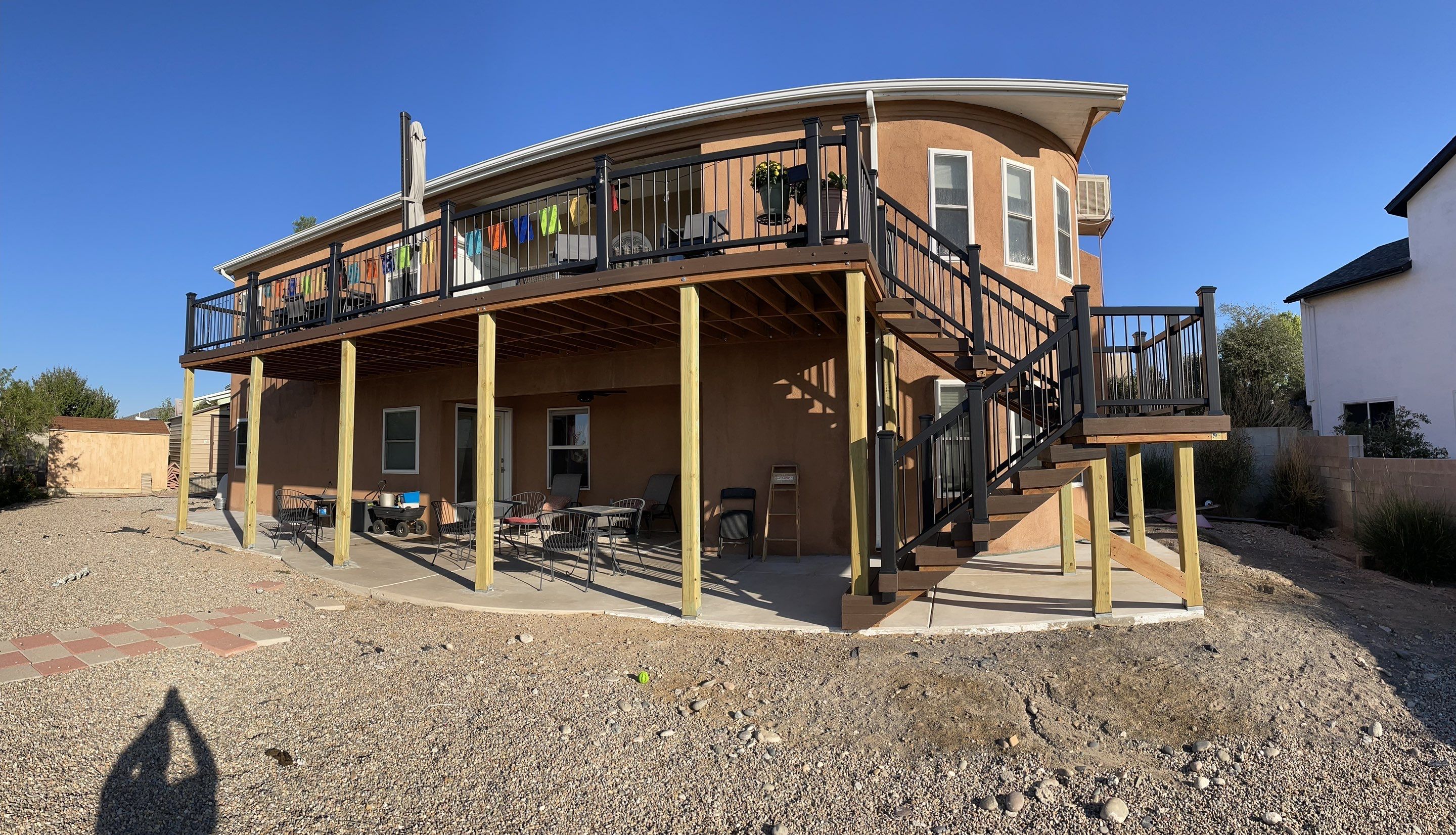We build custom decks for residential properties across Albuquerque, Rio Rancho, North Valley, Corrales, Bernalillo, and surrounding communities. Our crew handles everything from the foundation footings to the final railing and finish work — using materials suited to withstand New Mexico's sun, heat, and temperature swings. Whether you want a simple ground-level platform, a multi-level structure, or a build that works around existing trees and landscaping, we plan it properly and build it to last. Permits and code compliance are handled by us from start to finish.